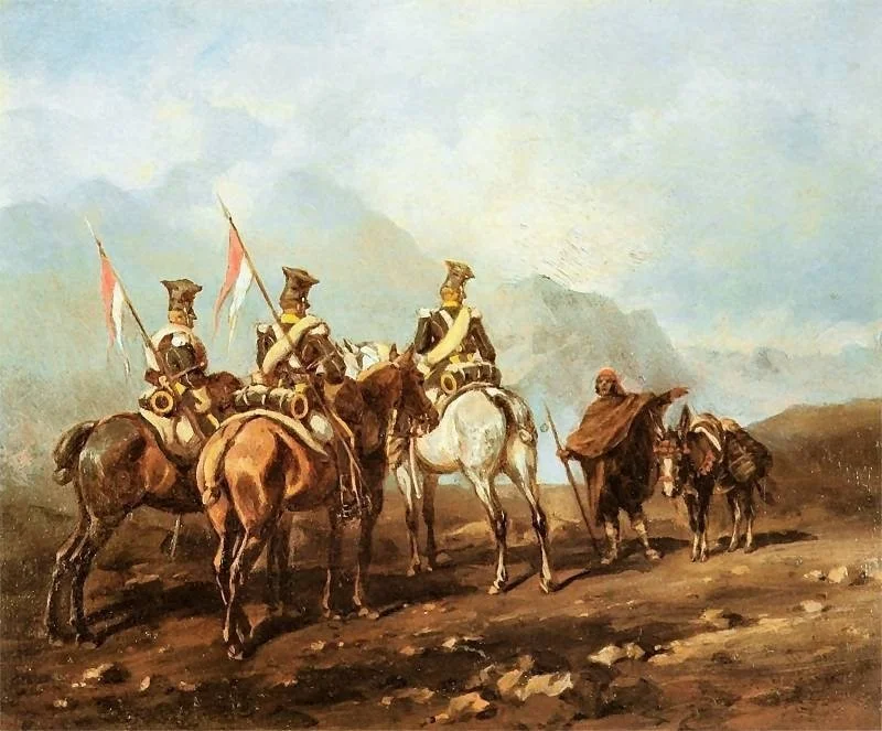 The Regiment, as part of Napoleon's Imperial Guard, fought in many battles, distinguishing itself at Wagram, Beresina, Hanau and especially Somosierra. On at least three occasions, light-horsemen of the Regiment saved Napoleon's life.